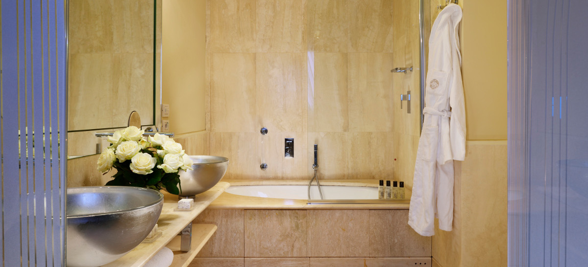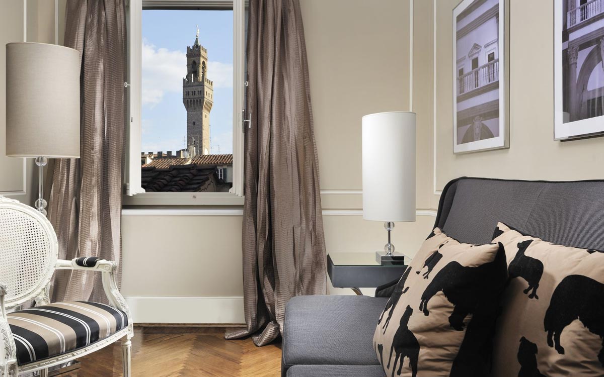 Wir präsentieren Ihnen eine Suite in Florenz mit Whirlpool, die aus 2 miteinander verbundenen geräumigen Suiten von jeweils 45 qm besteht. Die Two Bedrooms Suiten wurden vom Architekten Benelli renoviert und blicken auf die Fußgängerzone der Via del Corso bzw. auf die Piazzetta del Giglio. Auch die Two Bedrooms Suite, wie die anderen Zimmer des Luxus-Hotel im Zentrum von Florenz, ist mit Sorgfalt bis ins kleinste Detail gepflegt und in einem zeitgenössischen Stil eingerichtet, der dank der Farben und Materialien Wärme und Wohlbehagen schenkt. Die Suiten verfügen über begehbare Garderoben, in denen Gepäck untergebracht werden kann.